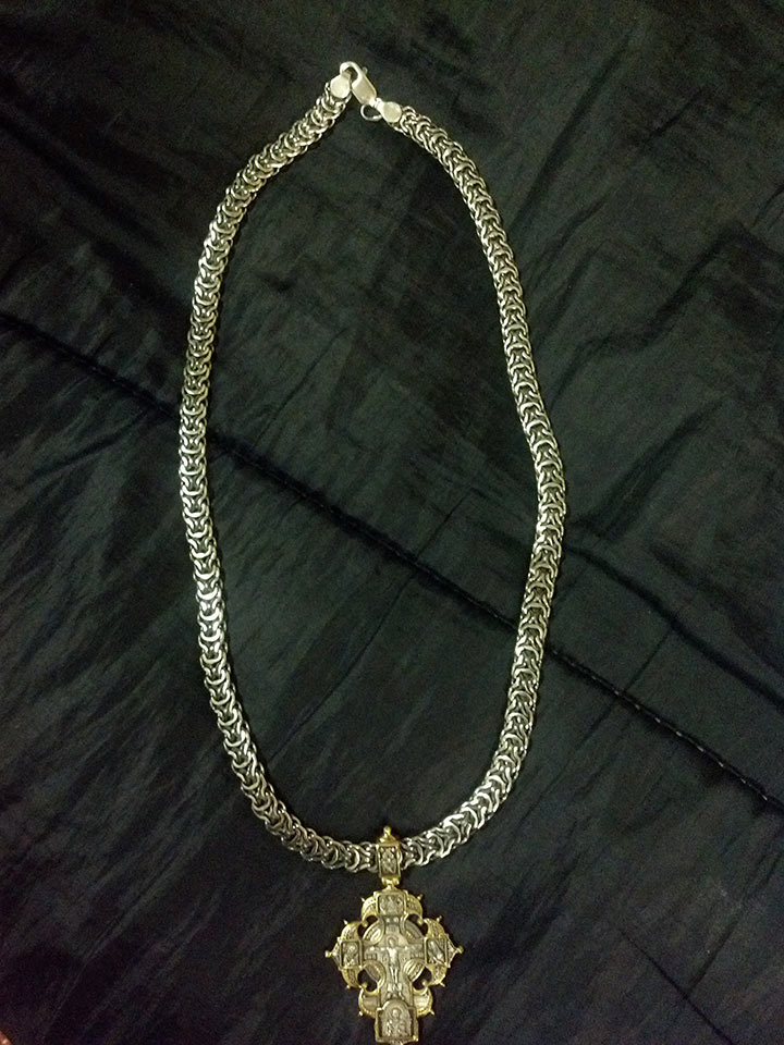 снова заказали цепь с тем же плетением, что и первый раз, но теперь толще и короче (4,5 мм толщина, 60 см длина). Очень довольны! Сделана безупречно, смотрится отлично! Благодарим!