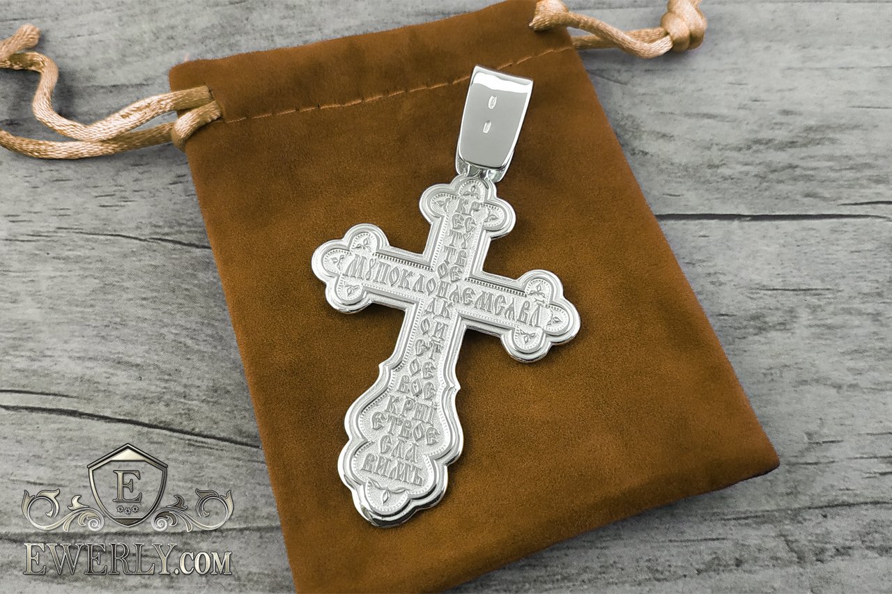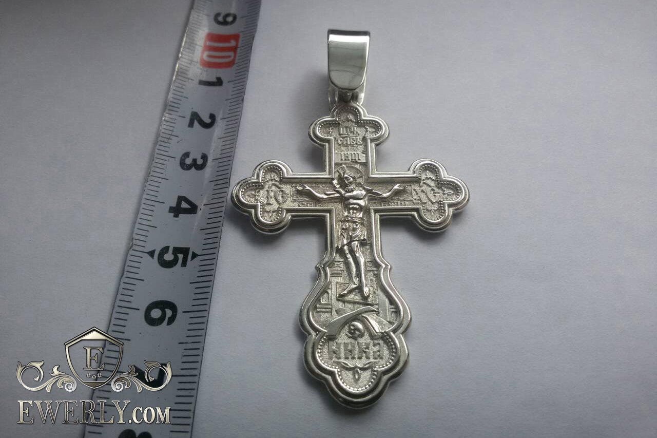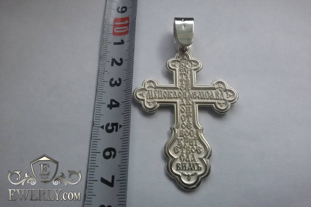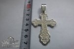 Изображено на фото: Православный серебряный крест с Распятием Христовым. Молитва Кресту. Длина: 5.7 см