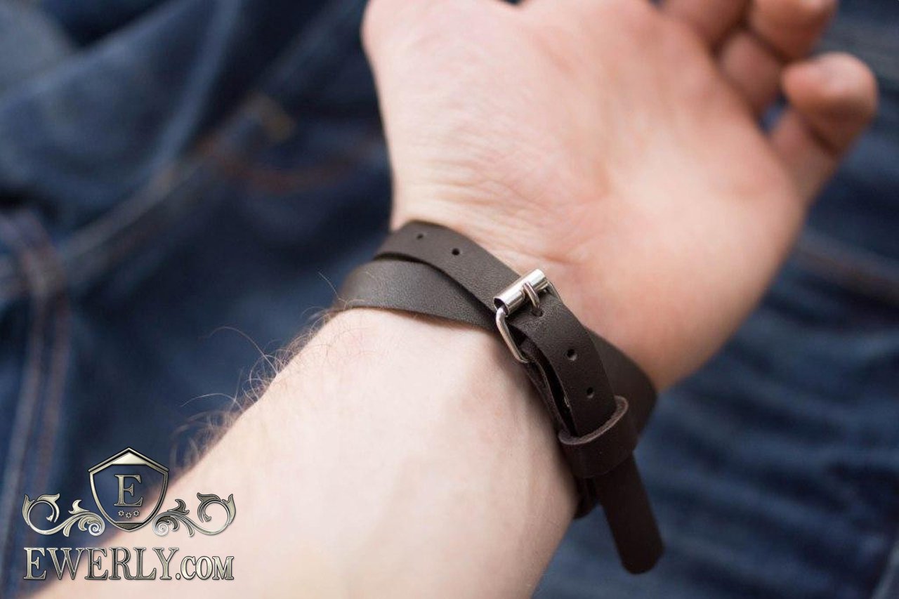 Браслет из натуральной кожи мужской коричневый 124001OV