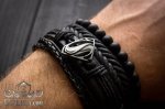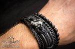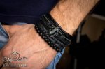 - Три кожаных браслета с регулировкой на шнурке и один браслет из камня вулканической лавы.