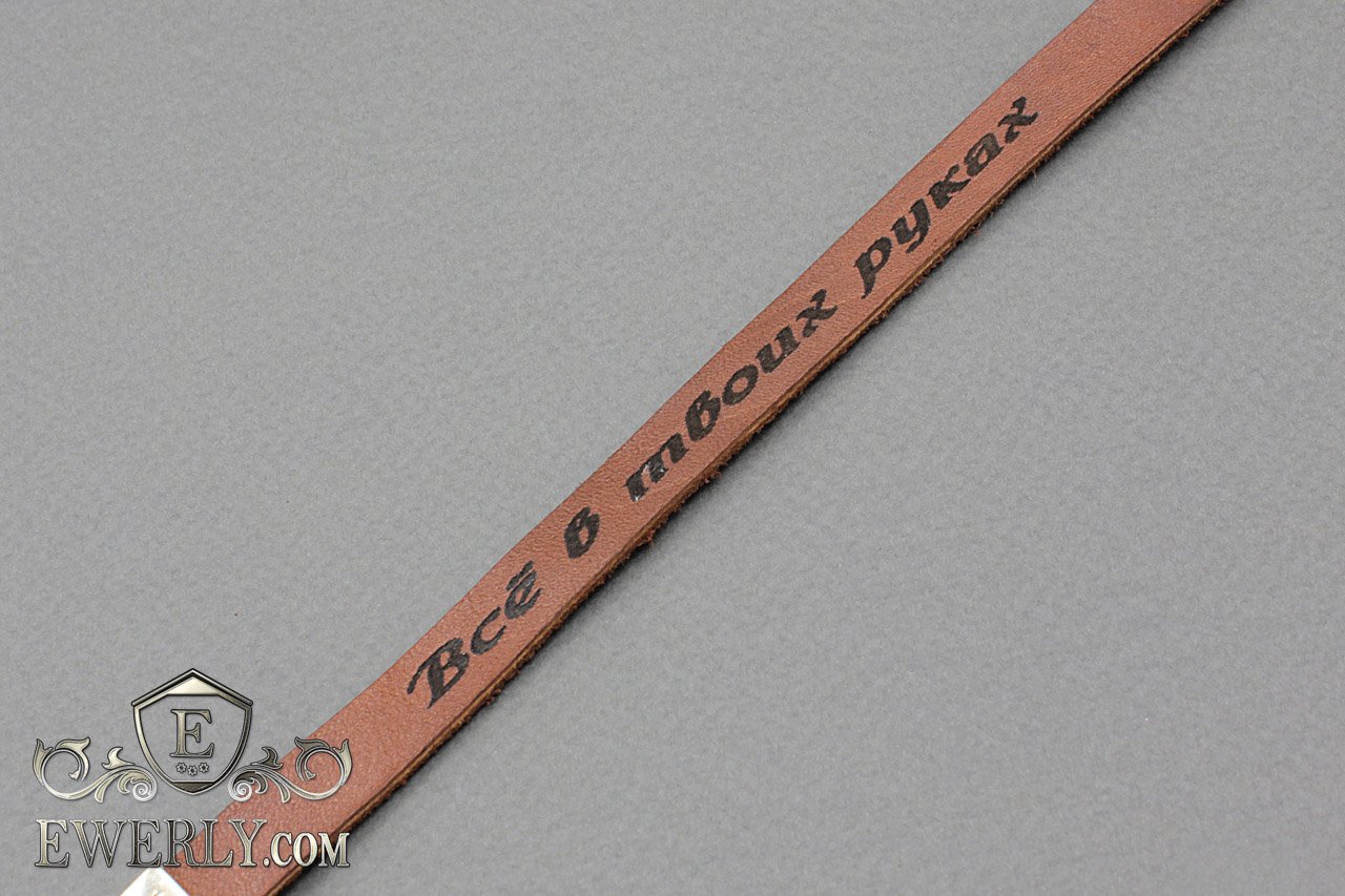 Подойдёт всем. Браслет из натуральной коричневой кожи с надписью "Всё в твоих руках" и серебряным замком.