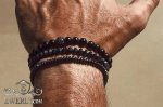 Состоит из трёх мужских браслетов из камня вулканической лавы. Цена указана за весь комплект.