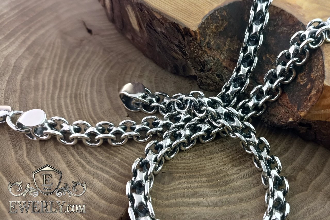 Серебряная цепь Квадрат ручной работы 90 грамм с чернением