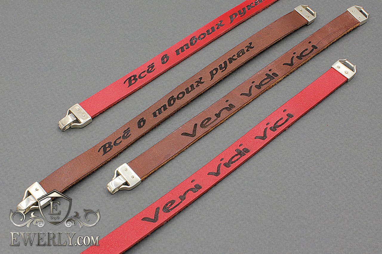 The inscription on the bracelet can be changed at will, and the leather color can be ordered differently - white, black, brown, red, purple, blue, green.