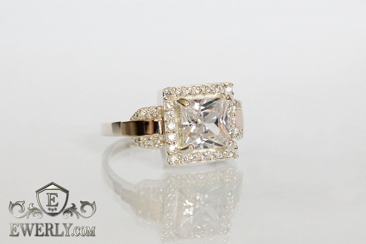 In the center of the composition is an expressive square cubic zirconia of a noble white shade, framed by the radiance of small inlays - small white stones.