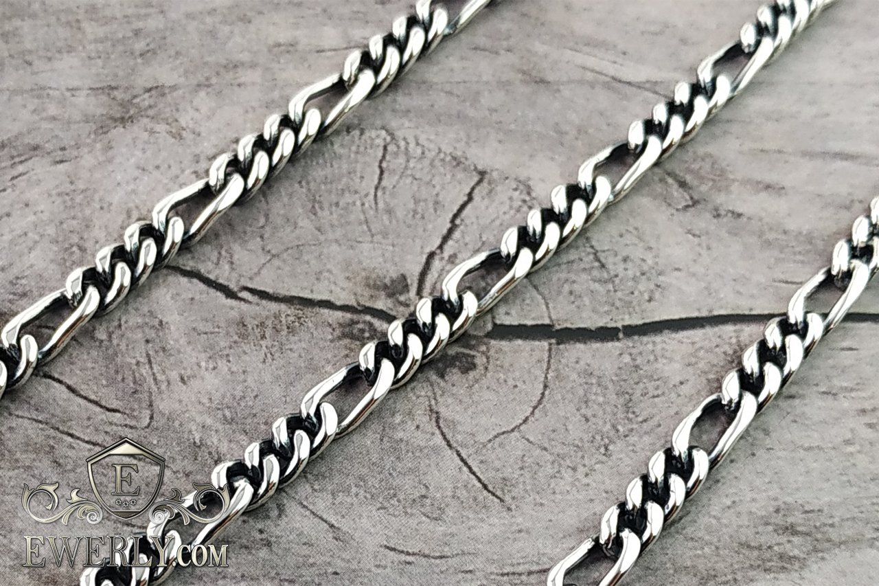 Полновесное плетение. Плетение «Фигаро» является по сути своей панцирным плетением (панцирем), но только с вытянутыми промежуточными звеньями. Также зачастую пользуется спросом у мужчин, но тем не менее исключительно мужским его тоже нельзя назвать, есть исключения.