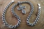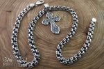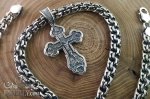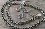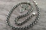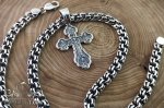 Мужская серебряная цепь 100 грамм с крестом, плетение Бисмарк