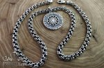 На фото показана серебряная цепочка "Бисмарк" с кулоном - амулетом "Чёрное солнце в футарке" с чернением. Купить славянский оберег с цепочкой из серебра можно практически в любых размерах. По любым вопросам обращайтесь на наши контакты.