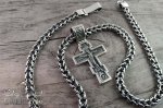 Цепь и крест из серебра чернением - серебряная цепочка 50 грамм