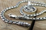 Цепочка Московский бисмарк из серебра и подвеска - кулон "Дракон"