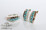 Кольцо и серёжки из серебра с золотыми пластинами и камнями - светло-голубыми фианитами для девушек.