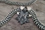 Мужская широкая цепь и кулон из серебра с викингом с рубином