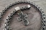 Мужская толстая серебряная цепь Аллигатор с большим крестиком