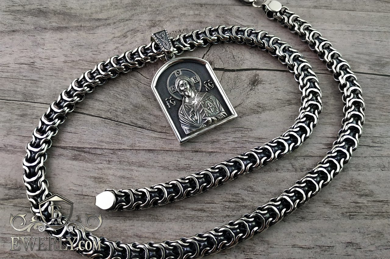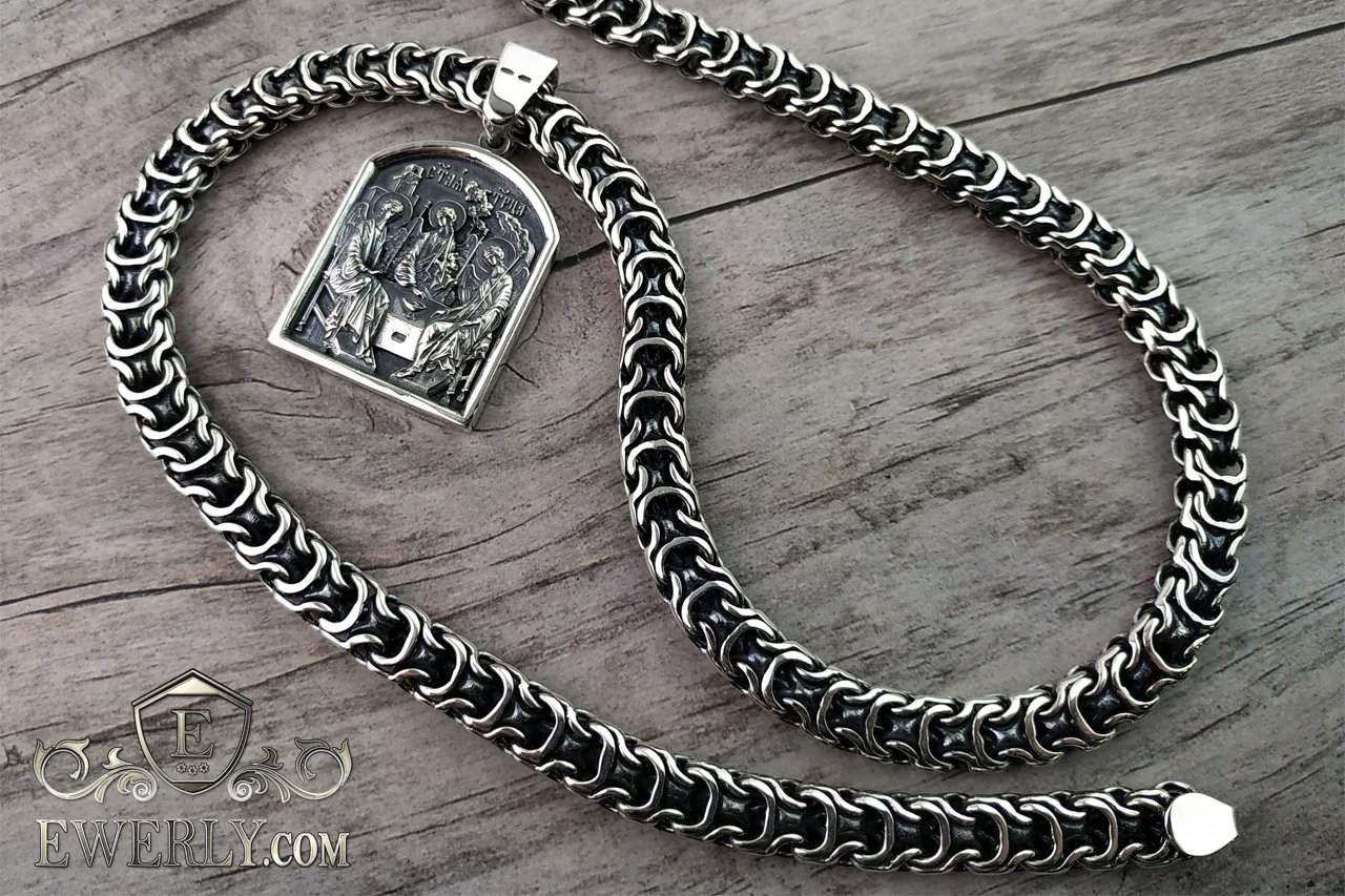 Серебряная цепь Рамзес с ладанкой "Святая Троица"
