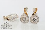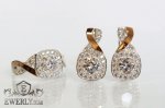 Серебряные серёжки и кольцо из серебра 925 пробы с золотыми вставками 375 пробы и камнями - белыми фианитами для девушки.