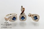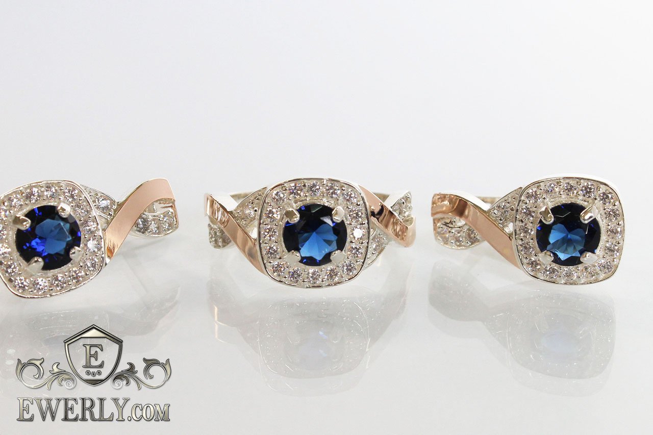 Серебряные серёжки и кольцо из серебра 925 пробы с золотыми вставками 375 пробы и камнями - синими фианитами для девушки.