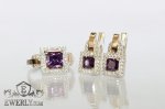 Женские серебряные серьги и кольцо с золотом и камнями (цвет-аметист)