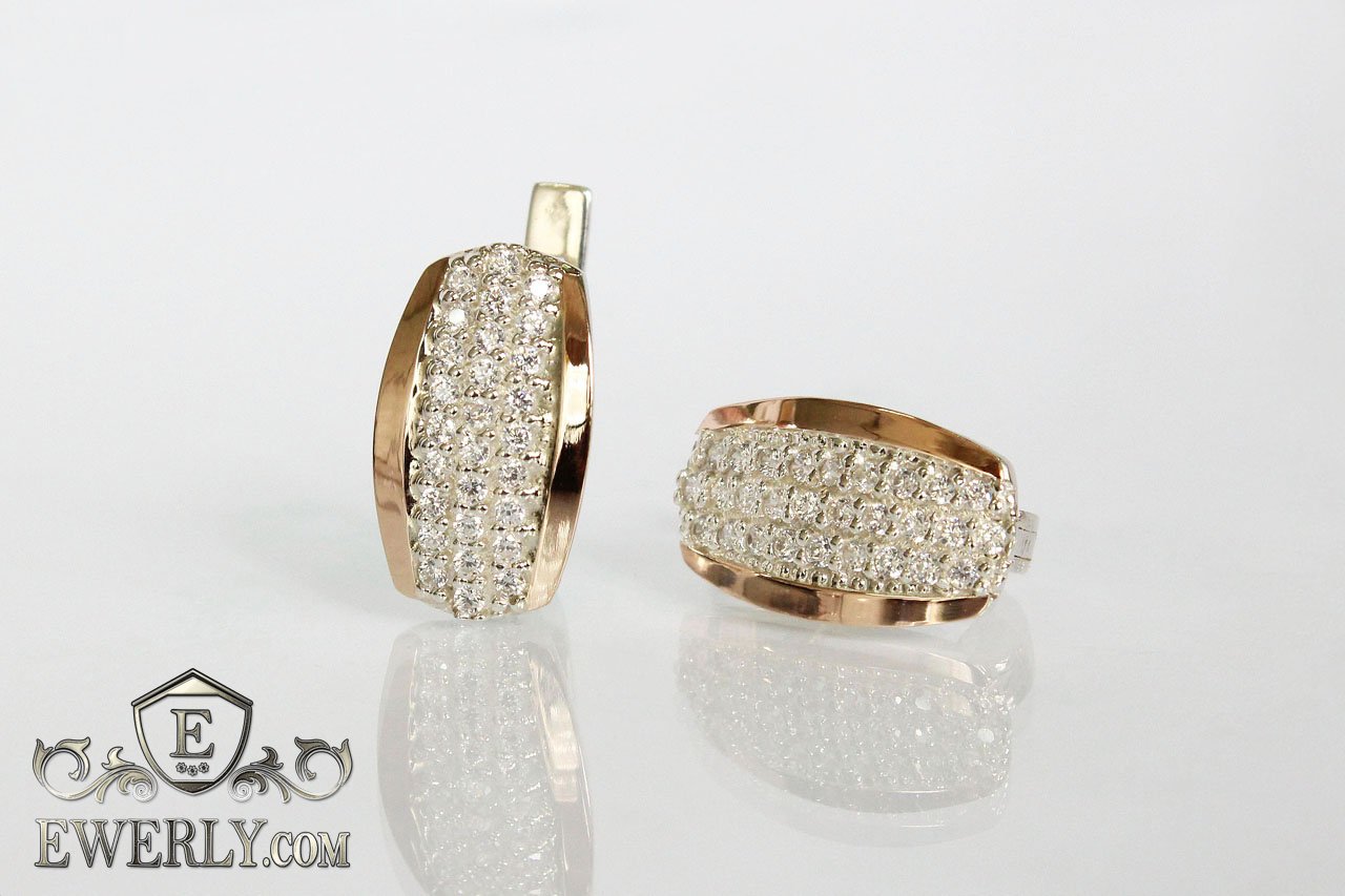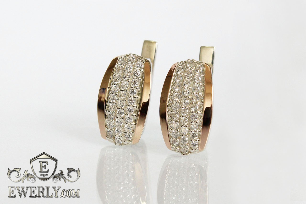 Серебряные серёжки с золотыми вставками и белыми камнями