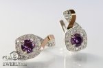 Женские серебряные серёжки 925 пробы с золотыми вставками 375 пробы с камнями (фианиты аметистового цвета).