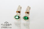 Серьги - капли из серебра с золотыми пластинами (зелёные камни)