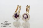 Женские серебряные серьги (серебро 925 пробы) с золотыми пластинами 375 пробы и фианитами (аметистовый цвет).