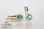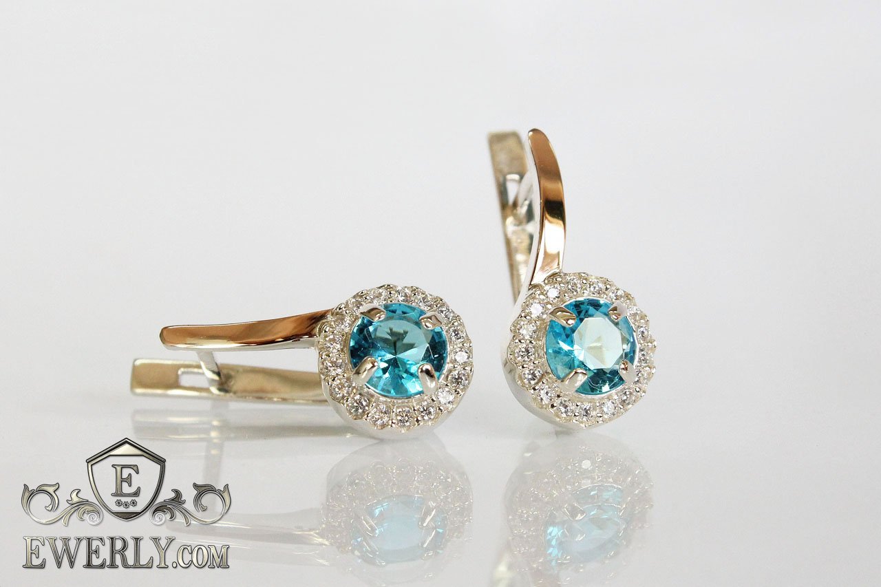 Женские серебряные серьги (серебро 925 пробы) с золотыми пластинами 375 пробы и светло-голубыми фианитами.