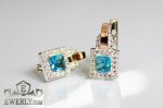 Женские серебряные серьги (серебро 925 пробы) с золотыми вставками 375 пробы и светло-голубыми фианитами.