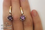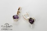 Женские серёжки из серебра с камнями аметистового цвета (золотые вставки)
