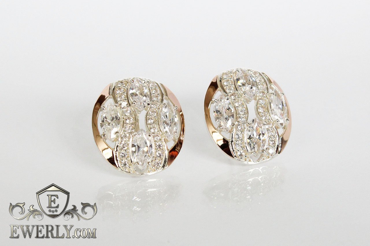 Серёжки из серебра с золотом для женщин (серебро 925 пробы, золото 375 пробы) с камнями - фианитами белого цвета.