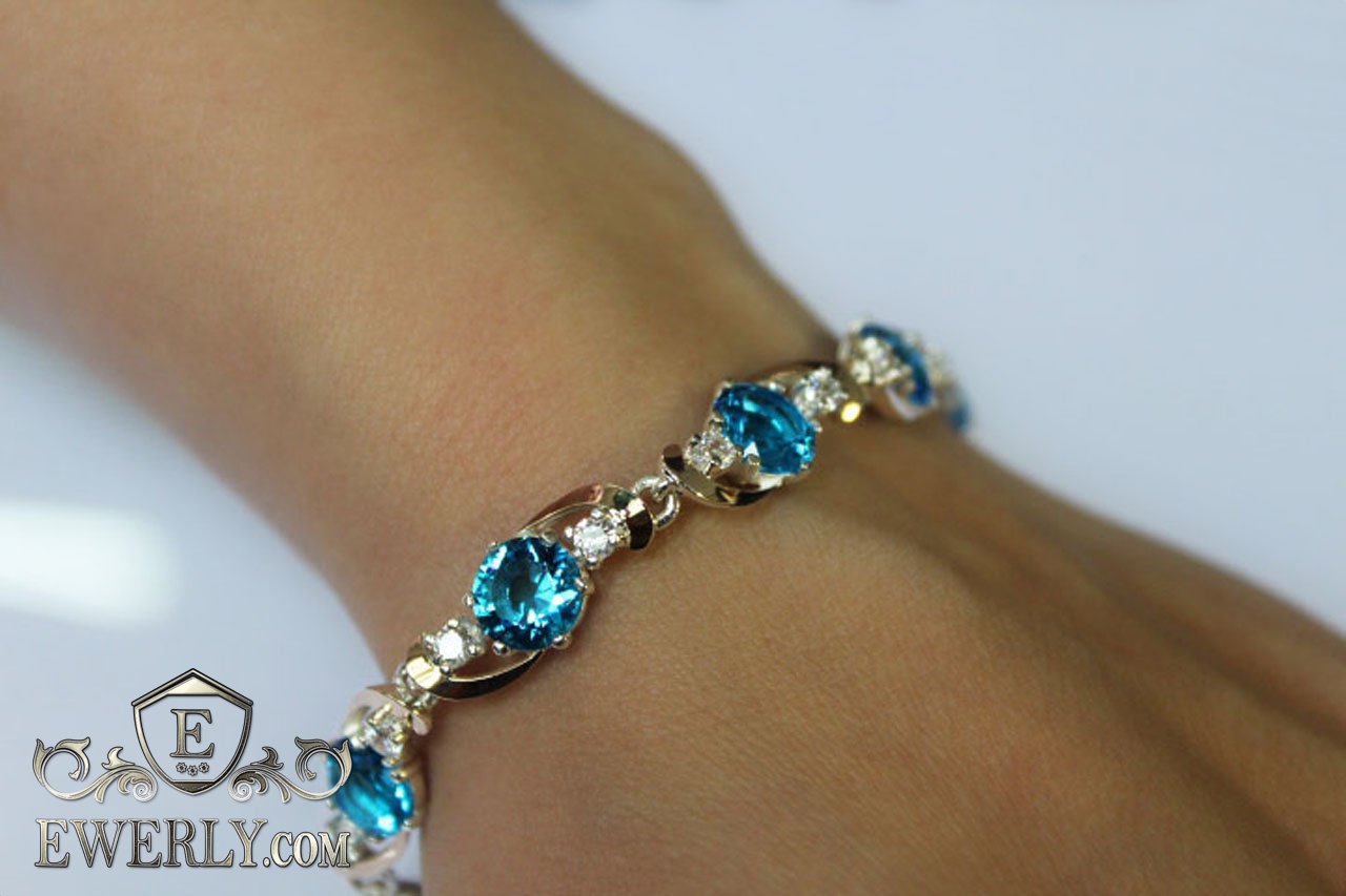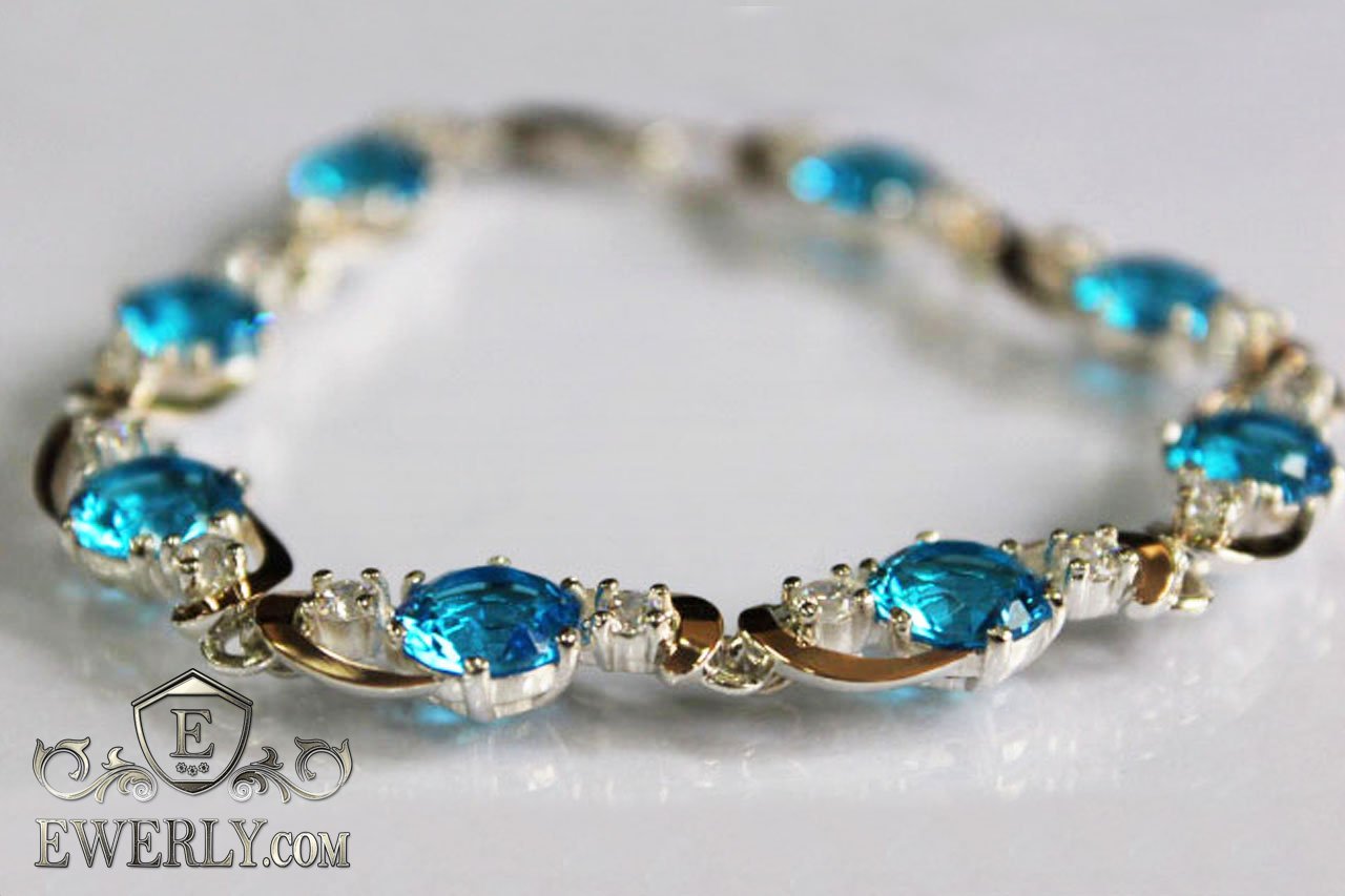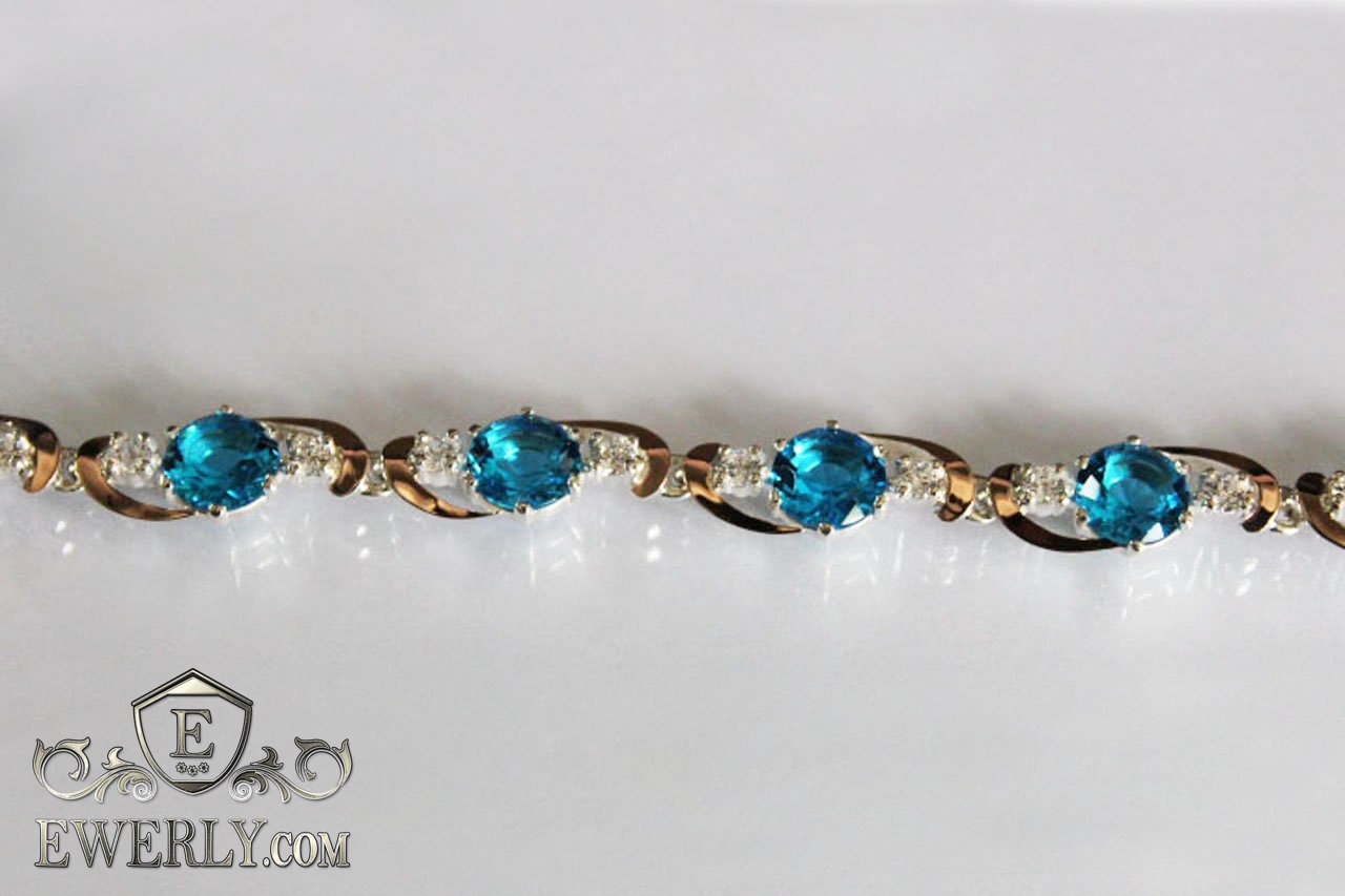 Женский браслет из серебра с золотом и голубыми камнями