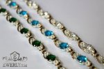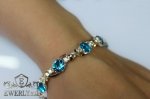 Полновесный браслет. Женский браслет из серебра со вставками золота и камнями (голубыми фианитами).