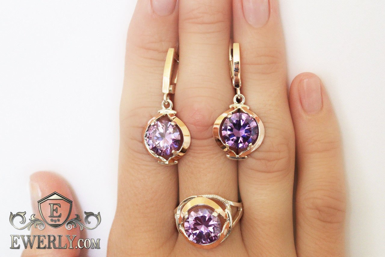 Вставки: фиолетовыми фианитами (цвет - аметист).