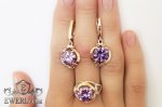 Женский комплект: серебряное кольцо и серёжки с фиолетовыми камнями