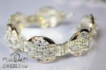 Полновесный браслет. Женский серебряный браслет с белыми фианитами и со вставками золота.