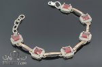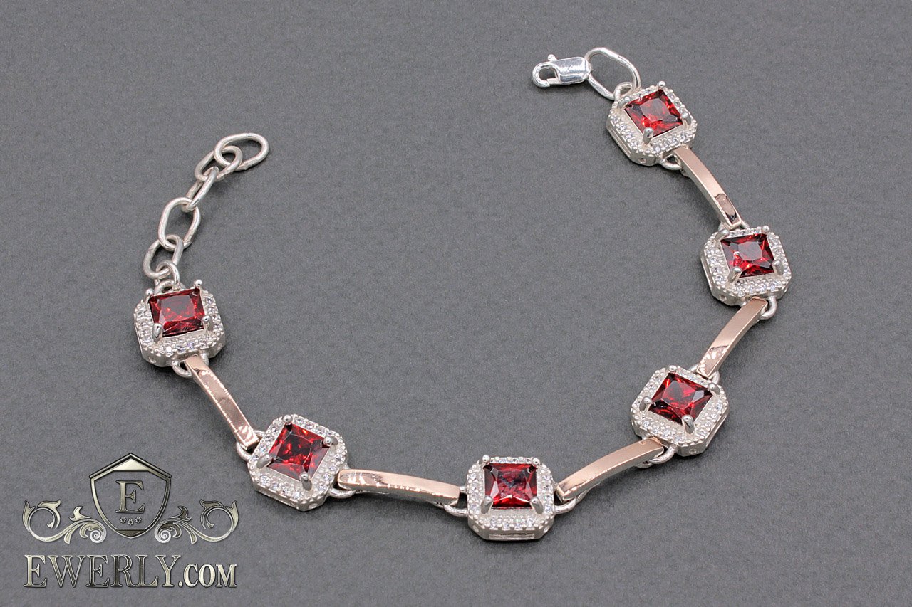 Женский серебряный браслет с золотом и красными камнями