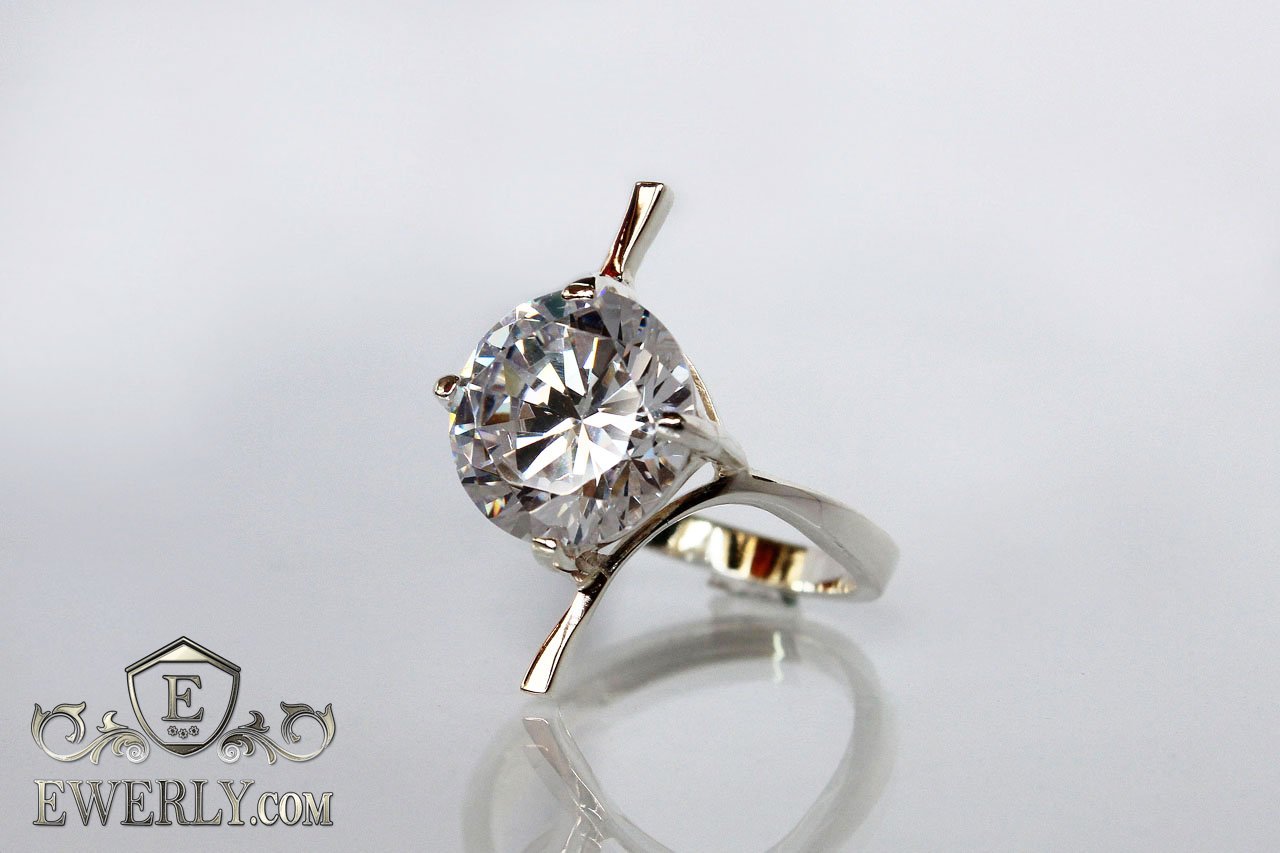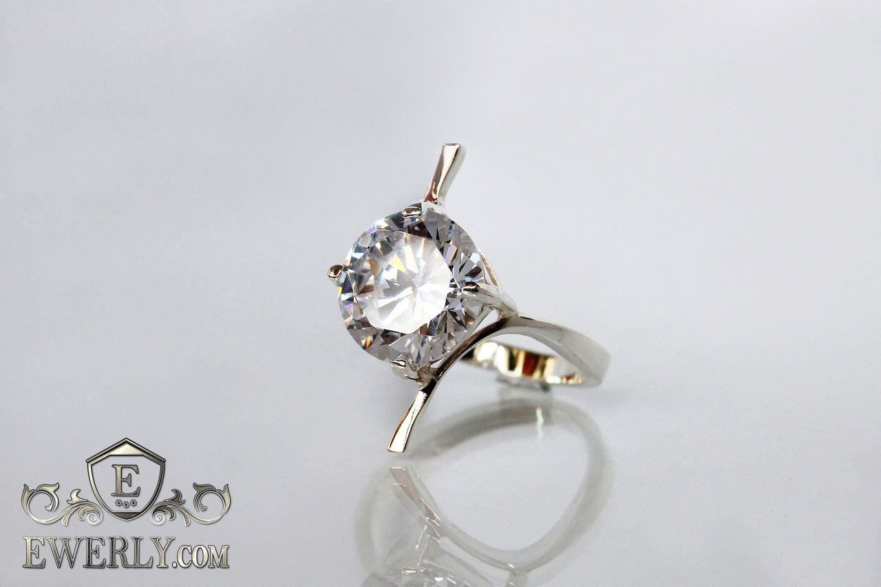 Женское кольцо из серебра с белым камнем