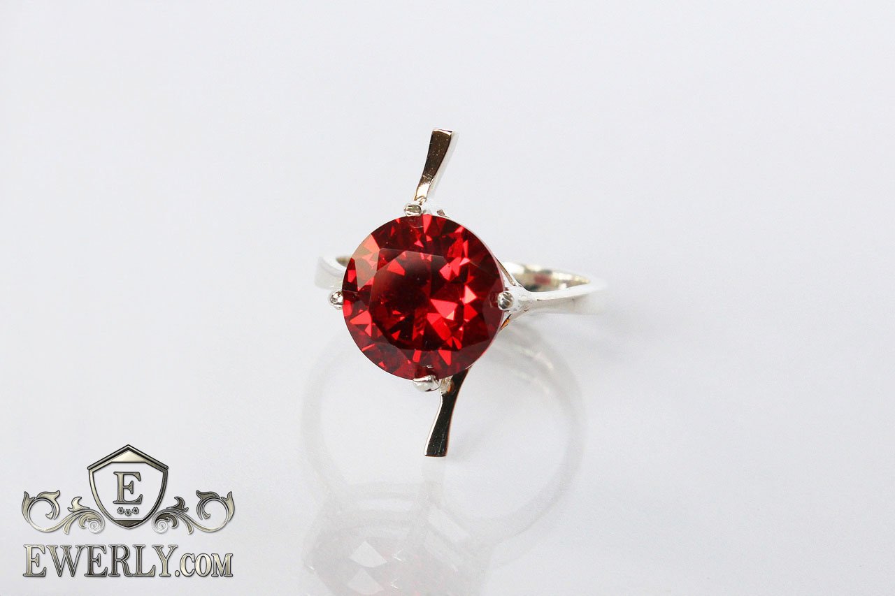 Женское серебряное кольцо 925 пробы с золотыми пластинами 375 пробы с гранатовым фианитом.