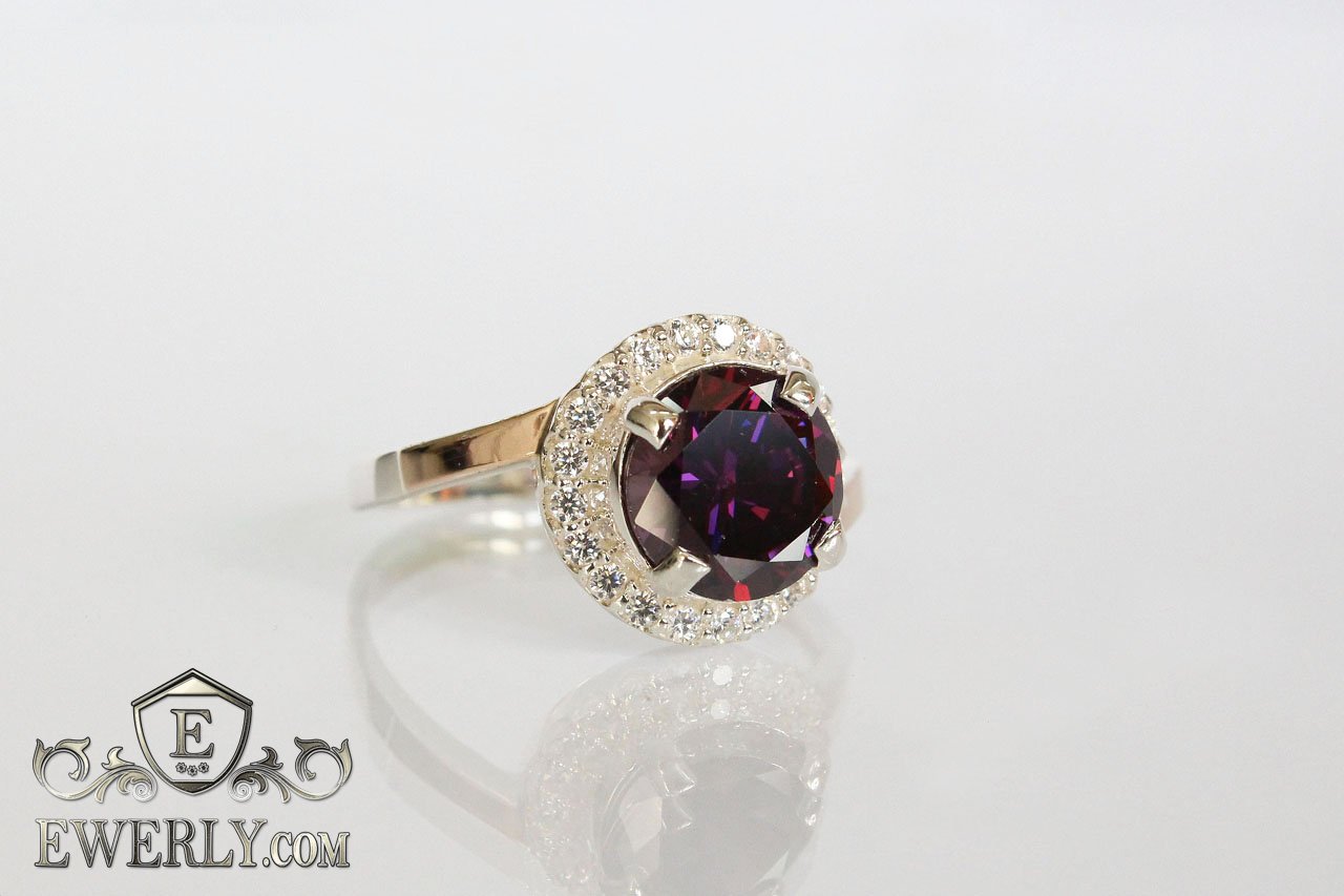 Женское серебряное кольцо 925 пробы с золотыми пластинами 375 пробы с фианитом (цвет - аметист).