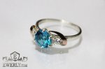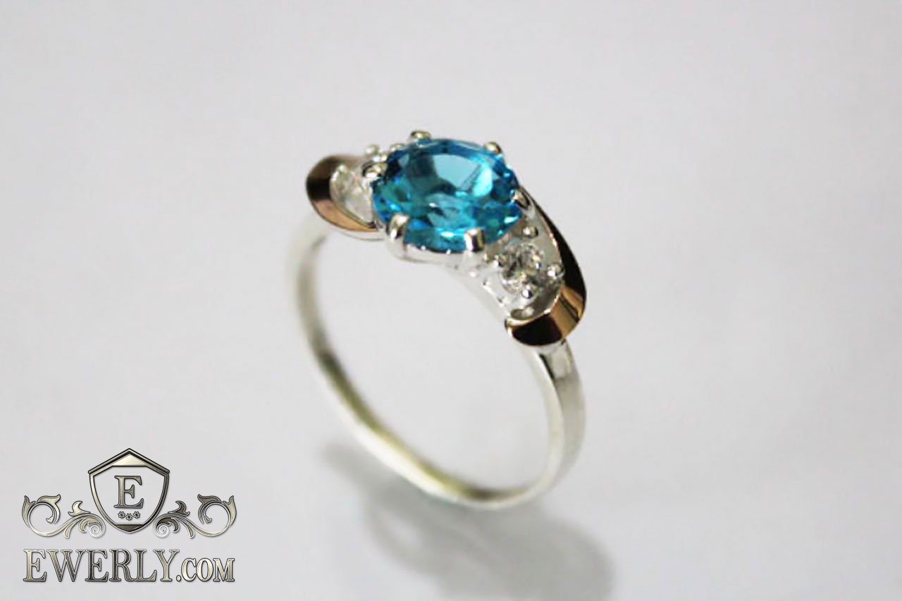 Женское серебряное кольцо 925 пробы с золотыми пластинами 375 пробы с фианитом (голубой цвет).
