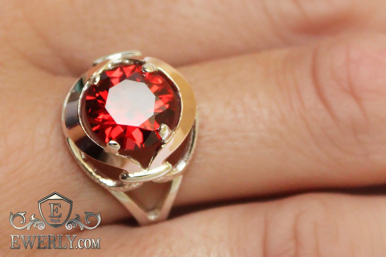 Женское серебряное кольцо с гранатовым с камнем (гранатовый цвет)