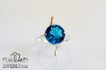 Женское серебряное кольцо 925 пробы с золотыми пластинами 375 пробы с фианитом (синий цвет).