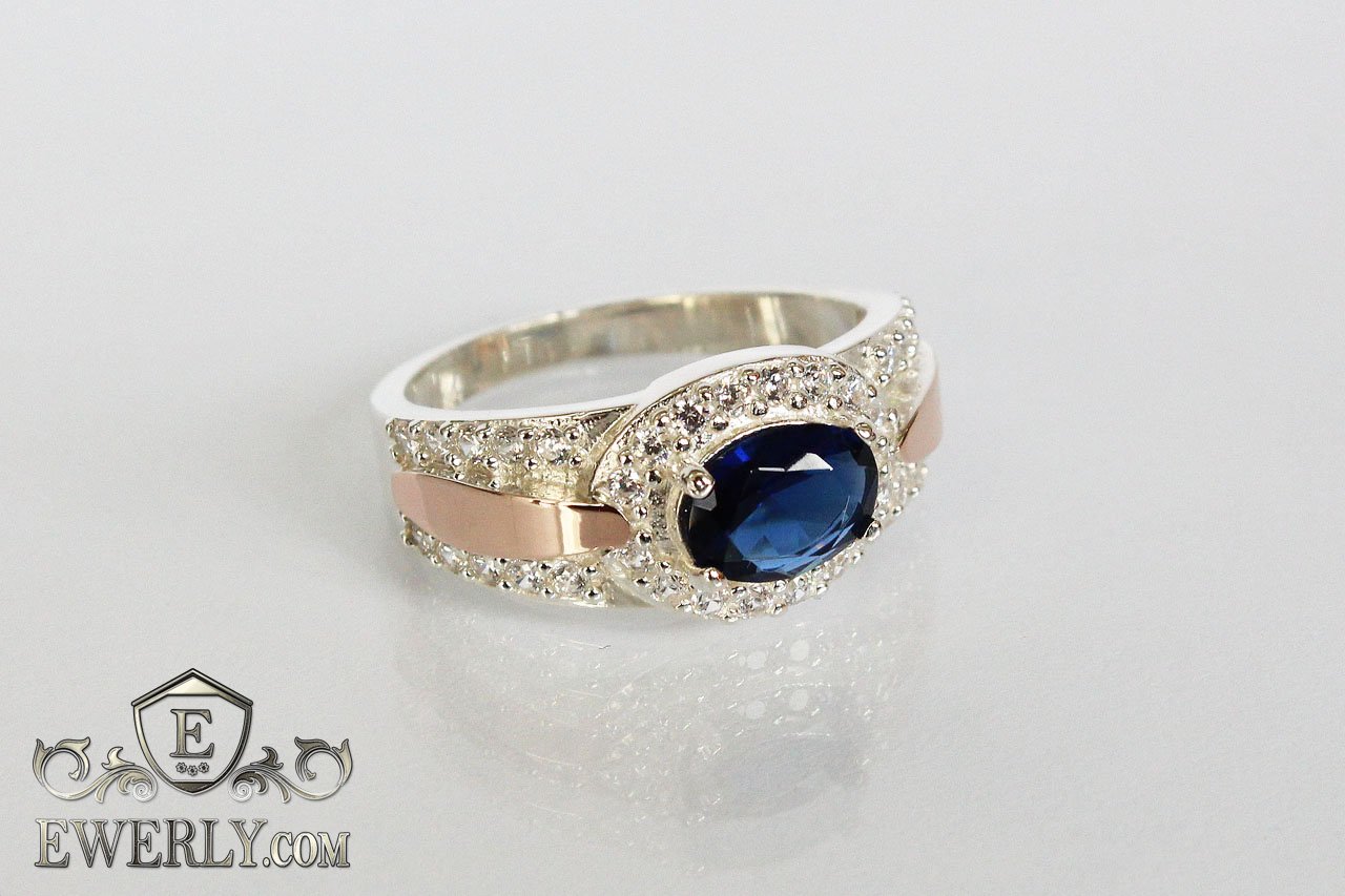Кольцо из серебра с синим фианитом