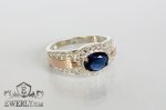 Женское серебряное кольцо 925 пробы с золотыми пластинами 375 пробы с овальным синим камнем.