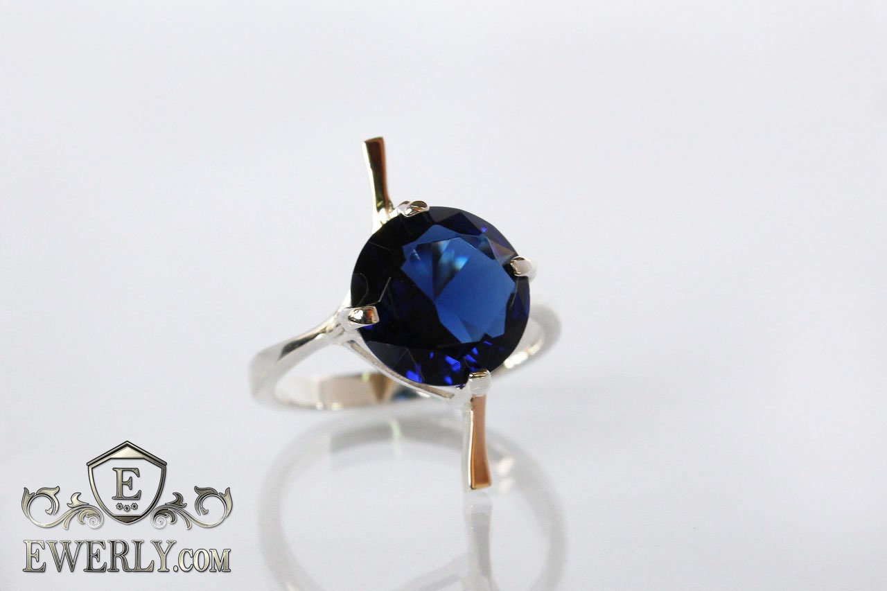 Женское кольцо из серебра с синим камнем (фианитом)