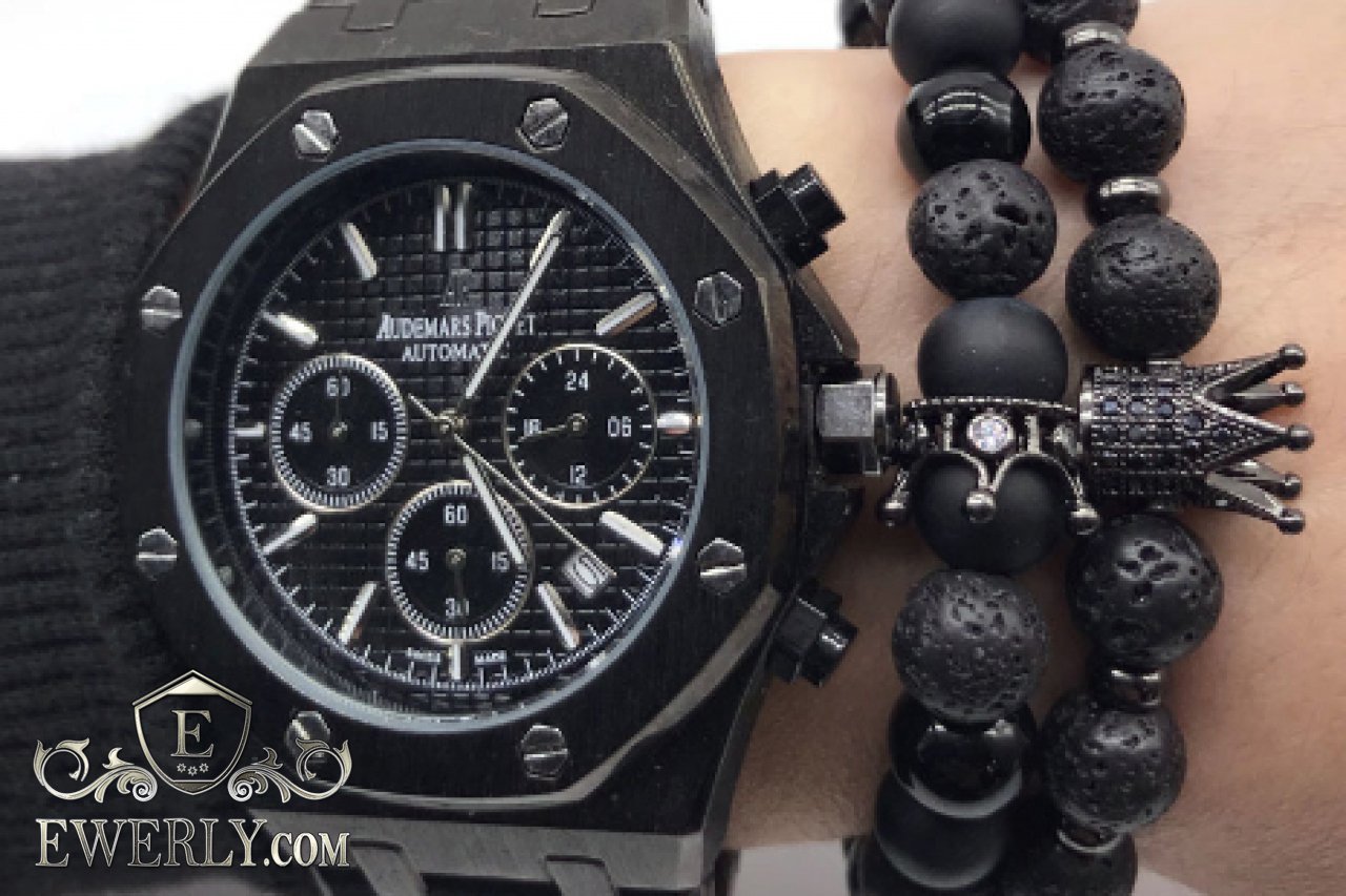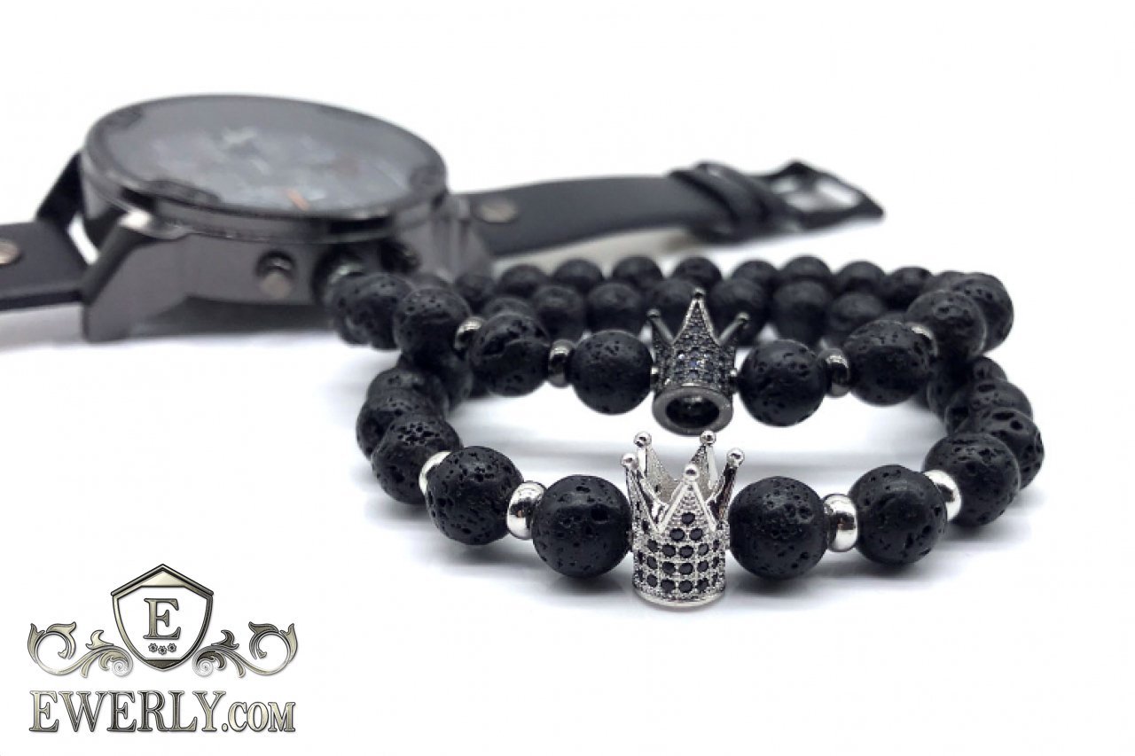 Каменный браслет из вулканической лавы для мужчины 123035ND