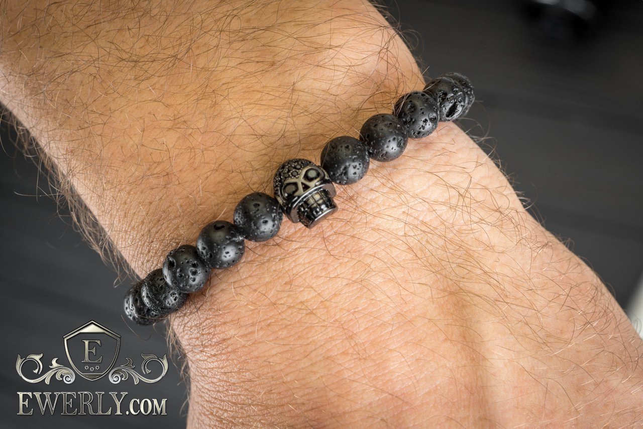 Браслет из вулканического камня на руку для мужчины 123034BC