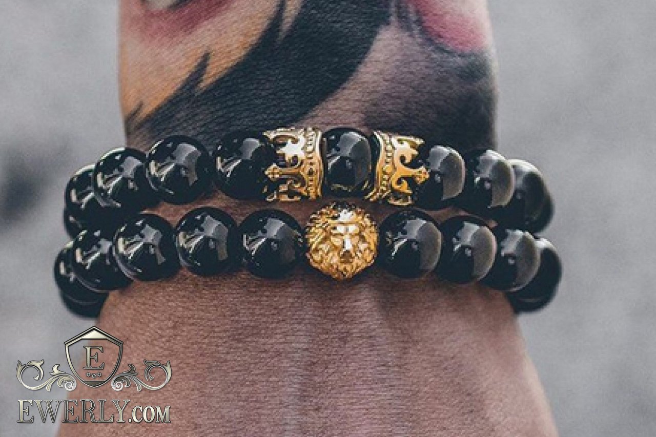 Мужской каменный браслет - комплект из вулканической лавы 123029NW