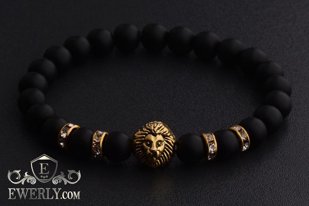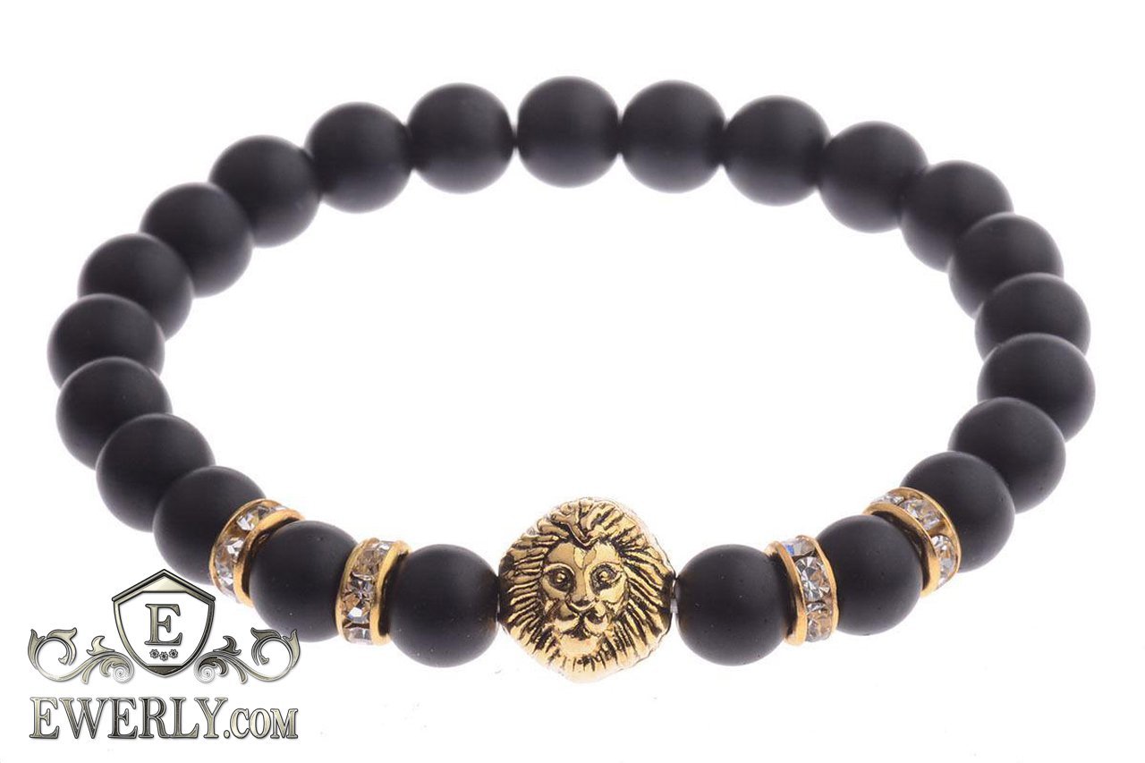 Каменный браслет чёрный матовый для мужчины на руку 123010XH