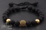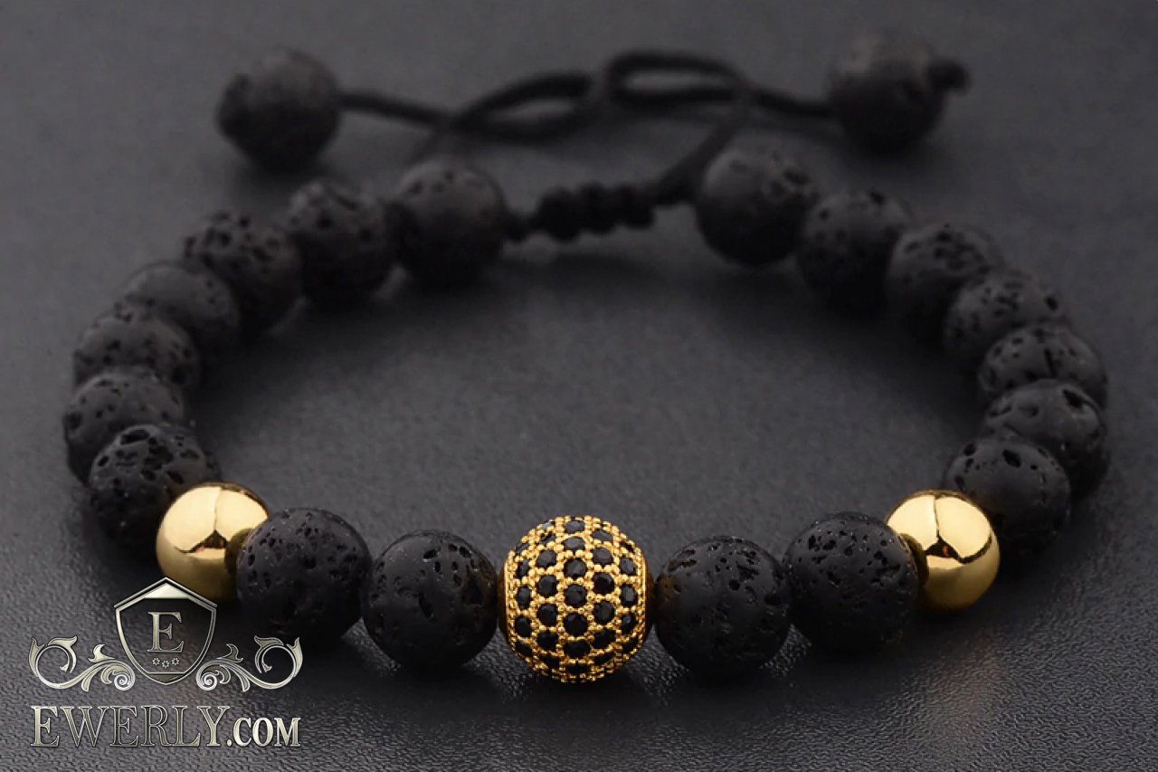Мужской браслет из камня вулканической лавы с иммитацией золота на руку.