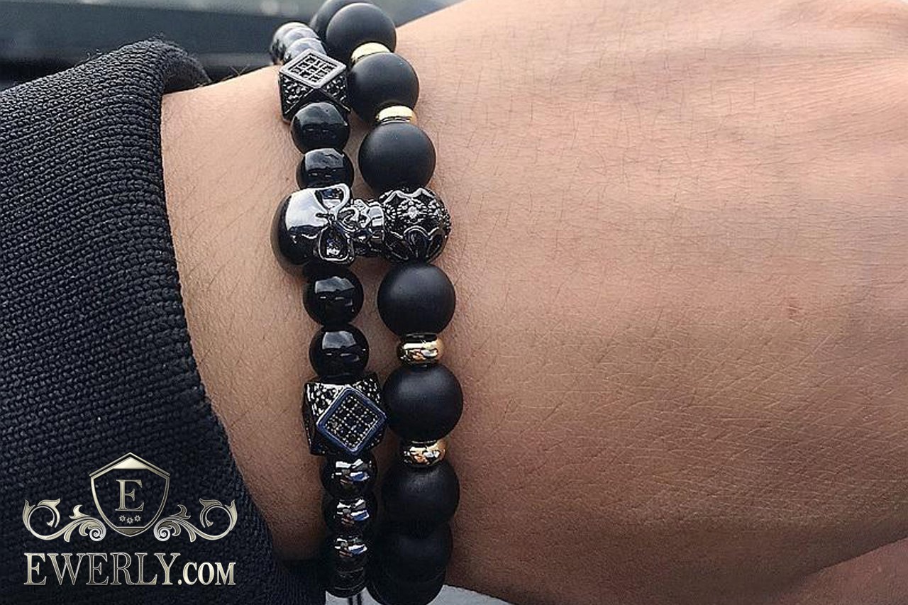 Мужской каменный браслет (комплект из вулканической лавы) 123060WA